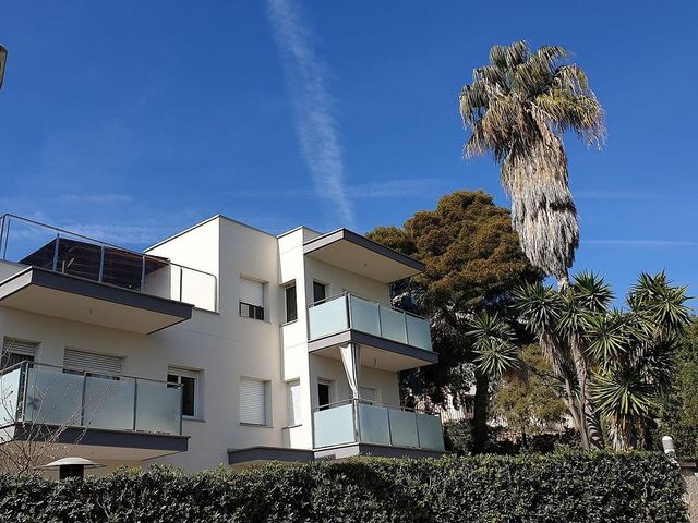 Gran terraza con pérgola para disfrutar gran parte del año. Vistas despejadas hasta Barcelona.