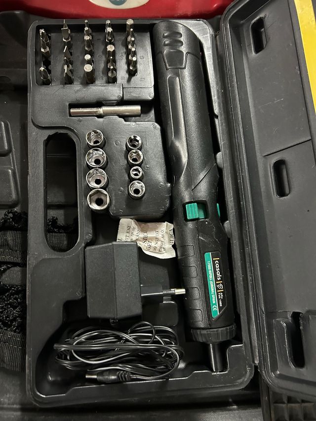 Atornillador a batería de la marca Casals, modelo 17500. - Incluye cargador. - Incluye juego de puntas y vasos. - Fabricado en España.