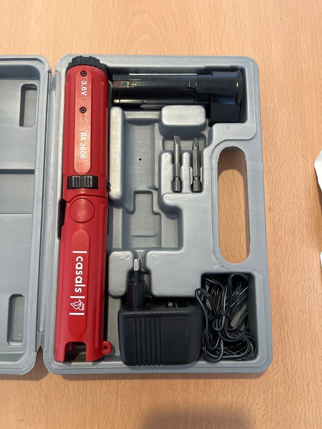 Detalles del productoAtornillador eléctrico recargable de la marca Casals.