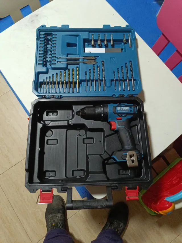 Atornillador Erbauer 18V con maletín y brocas