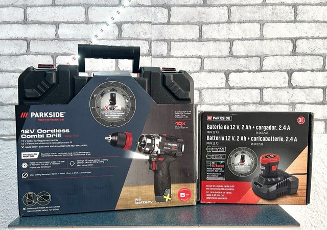 Detalles del productoTaladro percutor inalámbrico Parkside 12V Performance.