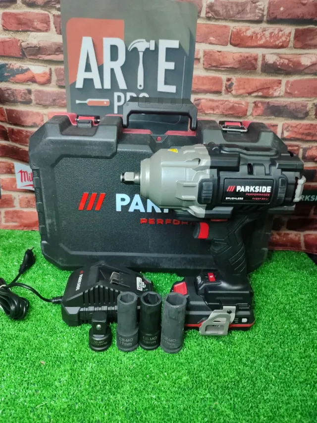 Detalles del productoAtornilladora de impacto Parkside Performance 20V con cargador, batería y accesorios.