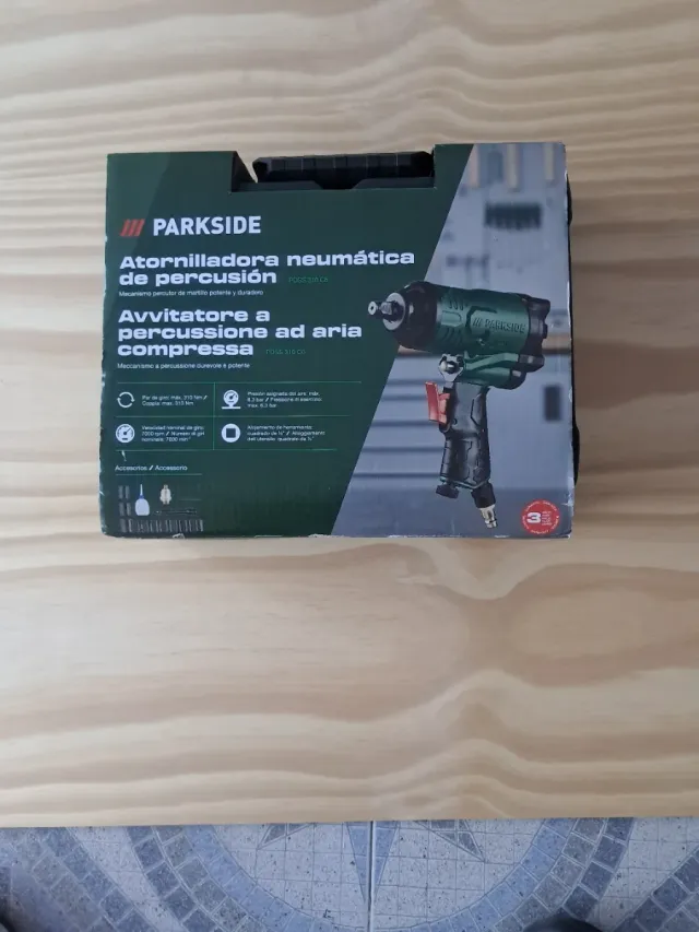 Detalles del productoAtornilladora neumática de percusión Parkside.