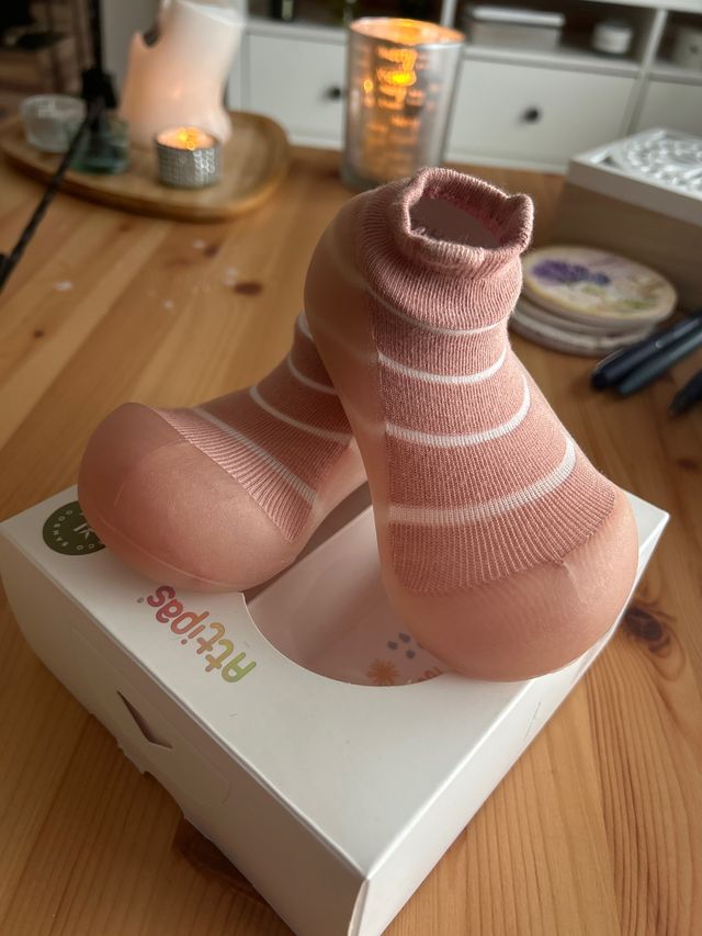 Zapatillas Attipas en talla 22.5. - Diseño en color rosa con rayas blancas. - Suela de goma flexible. - Nuevos