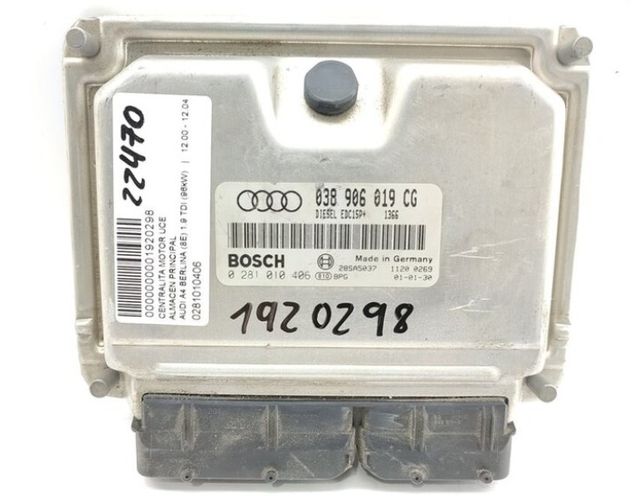 Detalles del productoCentralita motor uce AUDI A4 BERLINA 8E Año 2000 1.9 TDI 96KW . Referencia 0281010406. Observaciones 038906019cg. Código interno 1920298.