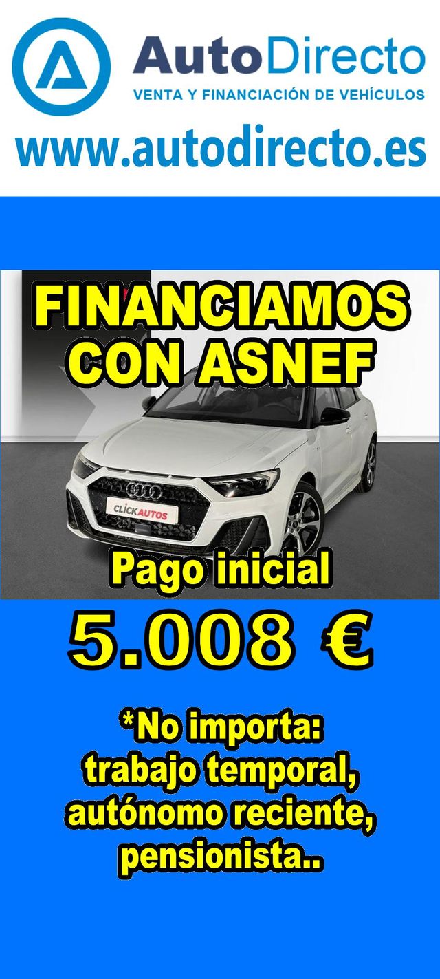Detalles del producto¿No consigues financiación? ¡Tenemos la solución! *************************************************************************** RENT CREDIT: Aprobamos más del 90% de las operaciones. No importa ASNEF o RAI, impagos pendientes, ser autónomo o empresa reciente, ser pensionista. Imprescindible pago inicial del 20%. Ejemplo de operación: AUDI A1 SPORTBACK 25 TFSI 95CV ADRENALIN. Ref. W955021MTM - Precio vehículo financiado: 25040 €. - Pago inicial de 5008 €. - Cuota mes desde 520 €. - Impuesto de circulación y garantía (mínimo 1 año) incluidos. *************************************************************************** ✅ Más de 3.000 COCHES Y FURGONETAS EN STOCK. ✅ HASTA 2 AÑOS DE GARANTIA. ✅ Kilómetros certificados. ✅ 17 concesionarios repartidos en toda España. ♻️ Aceptamos tu coche como parte del pago. *************************************************************************** IMPORTANTE: -. Este anuncio, no es vinculante, puede contener errores. SE MUESTRAN A TÍTULO INFORMATIVO Y NO CONTRACTUAL. -. Consultar disponibilidad del vehículo y datos exactos: fecha de matriculación, importes, etc,... *************************************************************************** Te ofrecemos distintas opciones: financiación, renting, alquiler con opción a compra, rent credit. En nuestro stock disponible encontraras: 3008 , qashqai , corolla , rav4 , sandero , Duster , yaris , 2008 , Tucson , Ibiza , 208 , Sportage , a3 , c4 , Formentor , q3 , yaris cross , 500 , c3 , arona , zs , x1 , kona , corsa , clase a , león , 308 , serie 1 , golf , focus , captur , a1 , tiguan , i20 , t roc , stonic , xc40 , civic , q5 , serie 3 , glb , 5008 , ateca , clio , kuga , c hr , i30 , arkana , juke , a4 , x3 , cx 5 , xc60 , kamiq , taigo , Mustang , x6 , polo , ceed , karoq , x2 , Astra , niro , cx 30 , a5 , cooper , megane , moka , fiesta , hs , q2 , clase c , serie 3 , renegade , picanto.