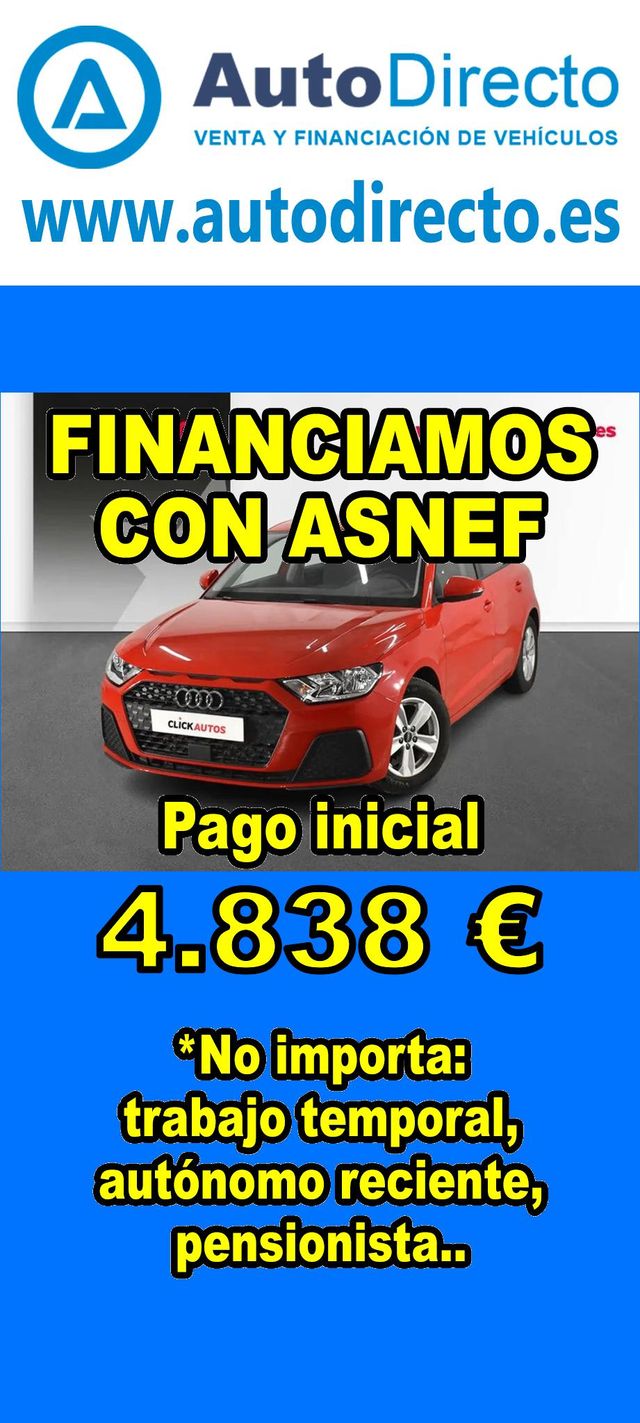 Detalles del producto¿No consigues financiación? ¡Tenemos la solución! *************************************************************************** RENT CREDIT: Aprobamos más del 90% de las operaciones. No importa ASNEF o RAI, impagos pendientes, ser autónomo o empresa reciente, ser pensionista. Imprescindible pago inicial del 20%. Ejemplo de operación: AUDI A1 SPORTBACK 25 TFSI 95CV EDITION CONNECT. Ref. W951390MVN - Precio vehículo financiado: 24190 €. - Pago inicial de 4838 €. - Cuota mes desde 503 €. - Impuesto de circulación y garantía (mínimo 1 año) incluidos. *************************************************************************** ✅ Más de 3.000 COCHES Y FURGONETAS EN STOCK. ✅ HASTA 2 AÑOS DE GARANTIA. ✅ Kilómetros certificados. ✅ 17 concesionarios repartidos en toda España. ♻️ Aceptamos tu coche como parte del pago. *************************************************************************** IMPORTANTE: -. Este anuncio, no es vinculante, puede contener errores. SE MUESTRAN A TÍTULO INFORMATIVO Y NO CONTRACTUAL. -. Consultar disponibilidad del vehículo y datos exactos: fecha de matriculación, importes, etc,... *************************************************************************** Te ofrecemos distintas opciones: financiación, renting, alquiler con opción a compra, rent credit. En nuestro stock disponible encontraras: 3008 , qashqai , corolla , rav4 , sandero , Duster , yaris , 2008 , Tucson , Ibiza , 208 , Sportage , a3 , c4 , Formentor , q3 , yaris cross , 500 , c3 , arona , zs , x1 , kona , corsa , clase a , león , 308 , serie 1 , golf , focus , captur , a1 , tiguan , i20 , t roc , stonic , xc40 , civic , q5 , serie 3 , glb , 5008 , ateca , clio , kuga , c hr , i30 , arkana , juke , a4 , x3 , cx 5 , xc60 , kamiq , taigo , Mustang , x6 , polo , ceed , karoq , x2 , Astra , niro , cx 30 , a5 , cooper , megane , moka , fiesta , hs , q2 , clase c , serie 3 , renegade , picanto.