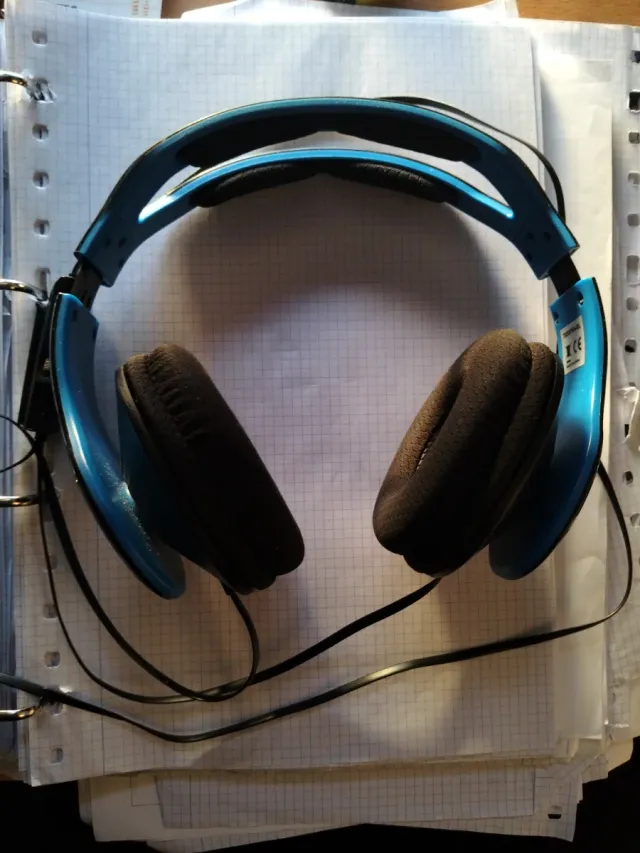 Auriculares gaming de color azul brillante. Son cómodos y cuentan con un diseño moderno. - Diadema ajustable. - Almohadillas suaves. - Cable de conexión.