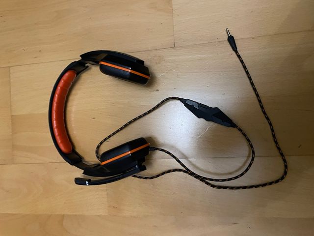 Detalles del productoAuriculares para gaming con un diseño llamativo en negro y naranja.