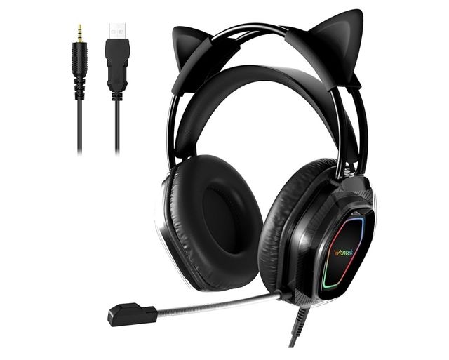 Sin usar Auriculares gaming con un diseño divertido y llamativo. - Orejas de gato. - Micrófono flexible. - Iluminación LED RGB.