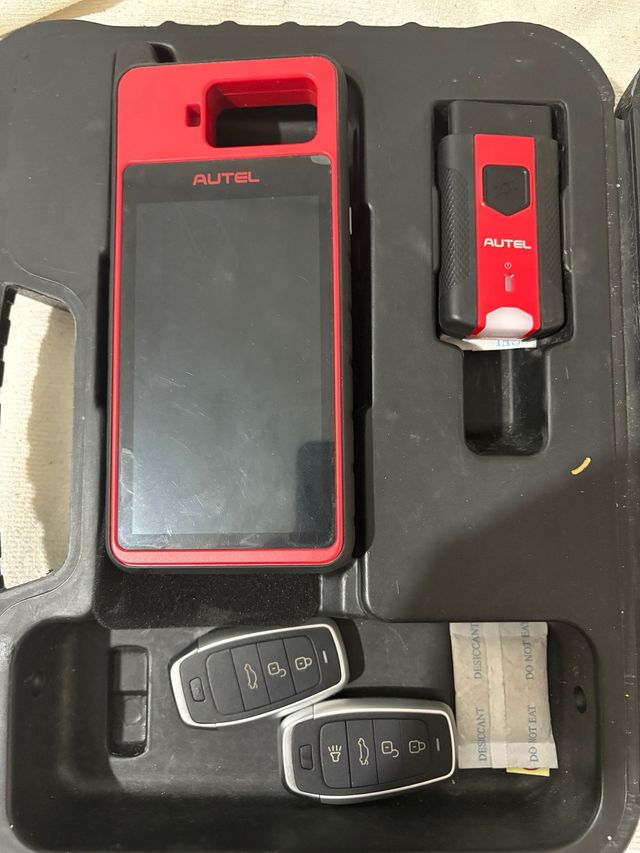 Detalles del productoEquipo profesional Autel K100 para duplicado de mandos de coche. Incluye el dispositivo principal y el adaptador.