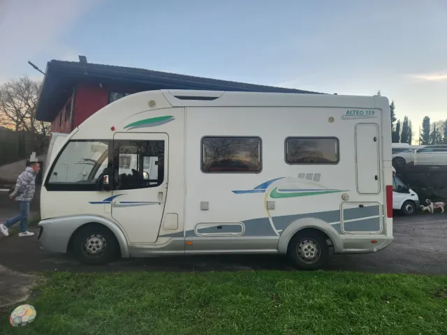 Detalles del productoAutocaravana integral CHAUSSON ALTEO 159 ,Es de 6 metros de largo,Motor 2.3 de 130cv y 6 velocidades, matriculada 16/06/2007 , 140.000 km , aire acondicionado en cabina y aire acondicionado en vivienda, 4 viajar y 4 dormir, cama principal grande en cabina y cama de matrimonio en el salón, ducha 🚿 separada, escalón eléctrico, porta bicicletas, toldo, placa solar , espejos eléctricos, solo venta no quiero ningún cambio, la venta es de particular a particular.