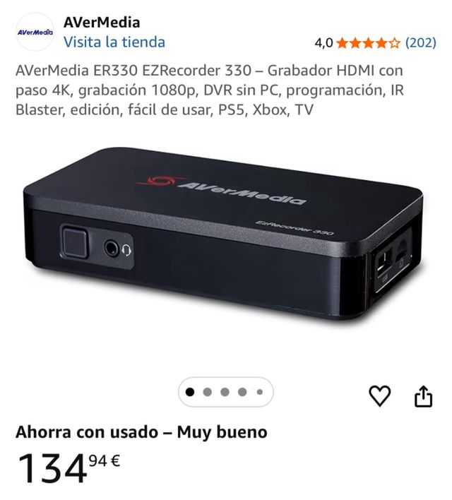 Detalles del productoGrabador HDMI AVerMedia ER330 EZRecorder 330.