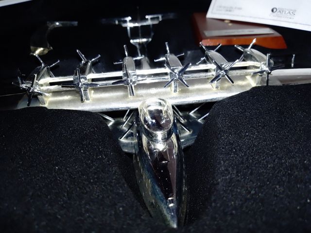 Detalles del producto avión de colección con acabado bañado en plata brillante. Ideal para exibición y colección.