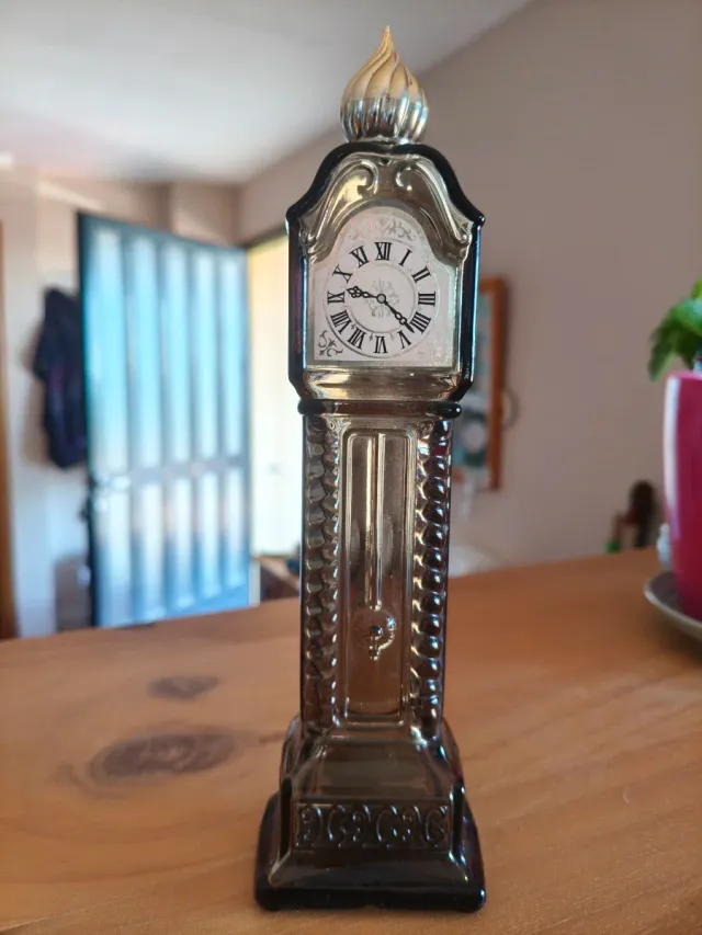 Envase de colonia Avon con diseño de reloj. Años 70. - Envase de vidrio marrón. - Tapón dorado. - Fragancia Roses Roses el envase está vacío pero aún huele).