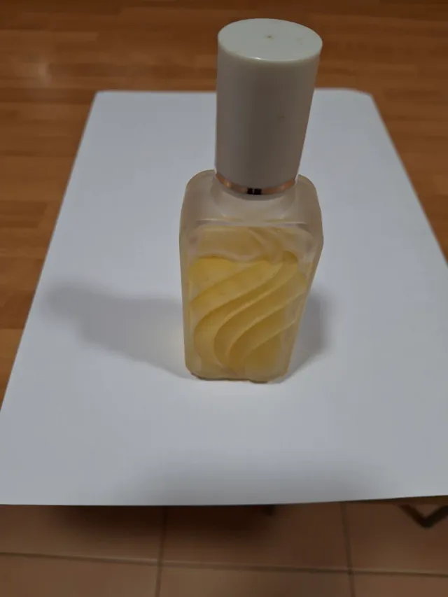 Frasco de perfume vintage de Avon años 70. Un diseño clásico y elegante. - Frasco de vidrio con detalles en relieve. - Tapa blanca y dorada. - Objeto de coleccion
