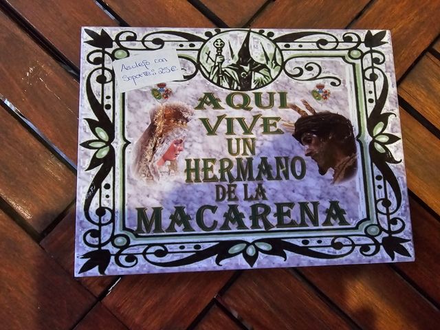 Detalles del productoOriginal azulejo decorativo con la imagen de Aquí Vive un Hermano de la Macarena.
