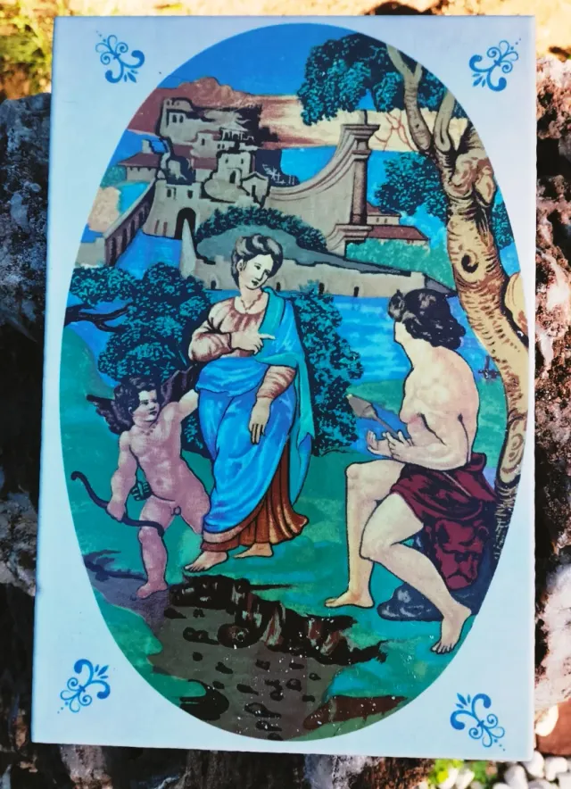 Detalles del productoPrecioso azulejo decorativo con escena mitológica.