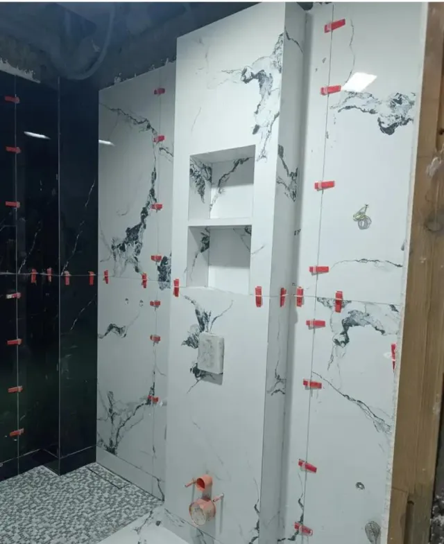 Azulejos con un diseño elegante que imita el mármol, ideales para baños o cocinas. - Diseño de mármol en blanco y negro. - Acabado brillante.