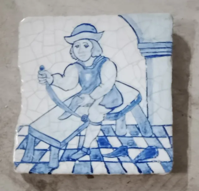 Detalles del productoAzulejo decorativo de la serie Oficios. Fondo cuarteado. Hecho a mano.