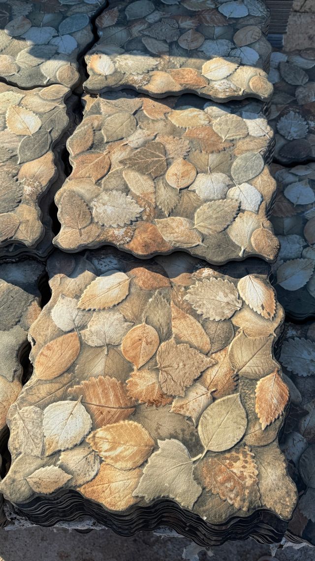 Detalles del productoBaldosas de exterior con un diseño texturizado de hojas secas. Perfectas para dar un toque natural a tu jardín o patio.