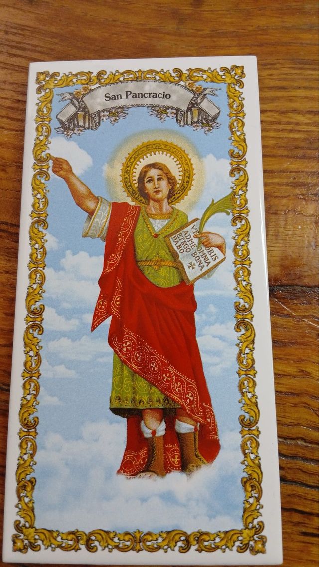 Detalles del productoAzulejo decorativo con la imagen de San Pancracio.