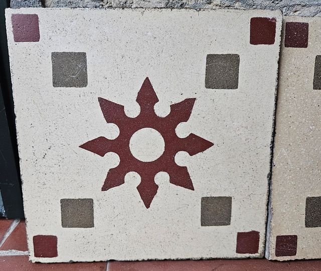 Losas de pavimento típico sevillano. Quedán sólo 3 unidades disponibles. Medida 19x19cm. Son de alrededor de 1880. Precio por unidad 9€. 3x 25€