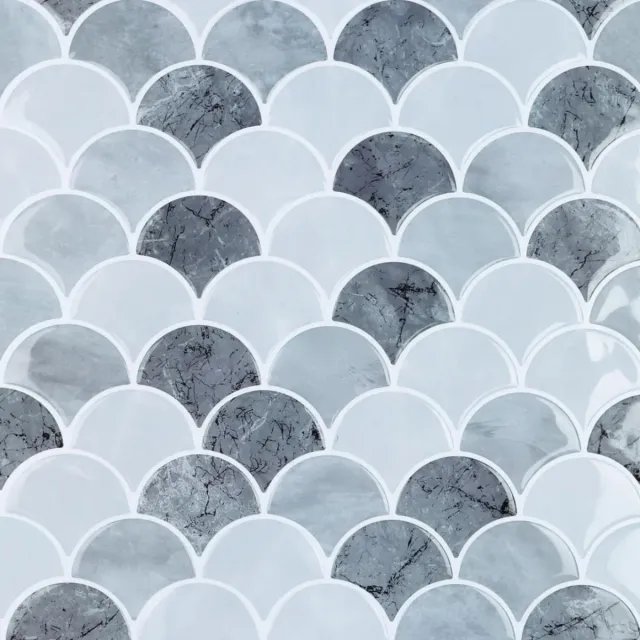 Pegatinas para azulejos 3D VaryPaper con diseño de escamas de pescado, modernas láminas adhesivas con aspecto de azulejo, 30,5 cm x 30,5 cm, 10 unidades, autoadhesivas, para pared, para cocina, baño, impermeables, para pared trasera de cocina
