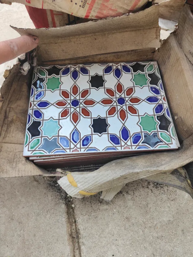 Conjunto de azulejos con un diseño antiguo y decorativo. - Patrón geométrico en colores. - Acabado brillante.