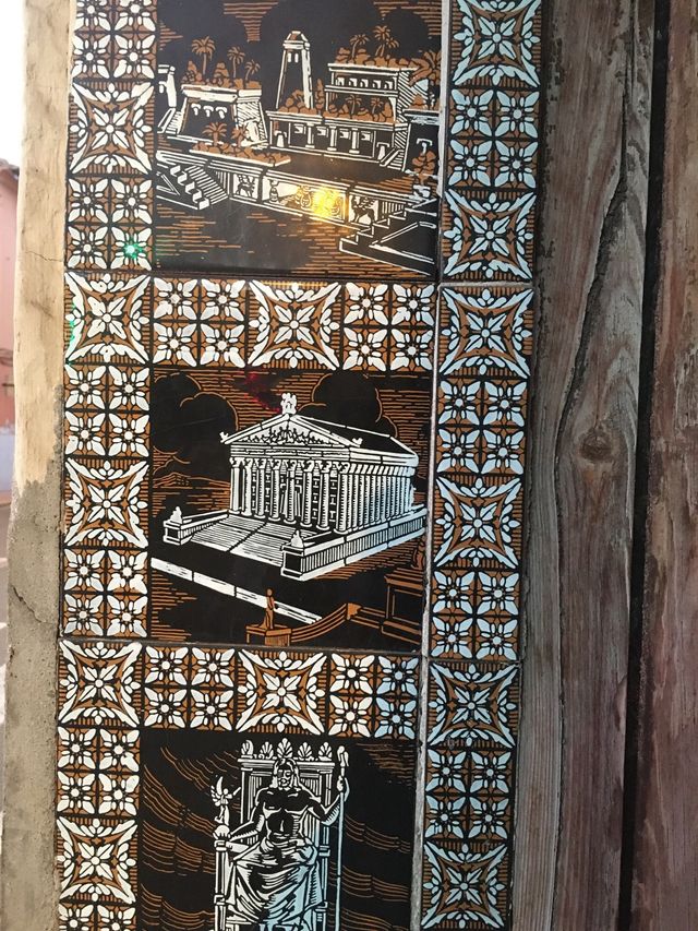 Detalles del productoConjunto de azulejos antiguos con motivos decorativos. Principios del siglo XX. Representan las 7 maravillas del mundo antiguo: