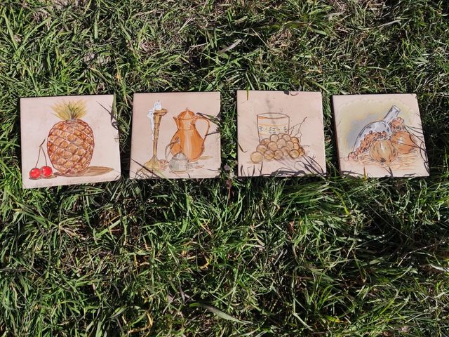 Detalles del productoAzulejos vintage, 19 con decoración de frutas y 9 blancos.