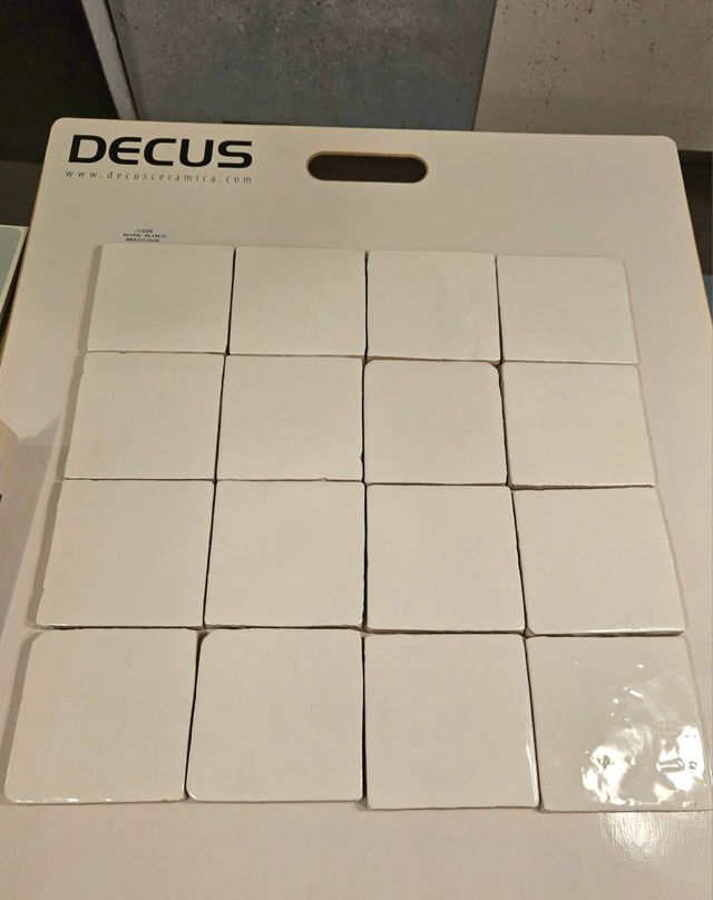 Detalles del productoLote de azulejos de cerámica de la marca DECUS. Azulejos artesanales DERCUS brillantes, con borde irregular y natural, alta impermeabilidad, ideales para baños y cocinas. Se trata de cajas sin abrir, sobrantes de una reforma; una de ellas está parcialmente abierta, como se muestra en la imagen. Cada caja contiene 50 azulejos, por lo que hay 100 en total.