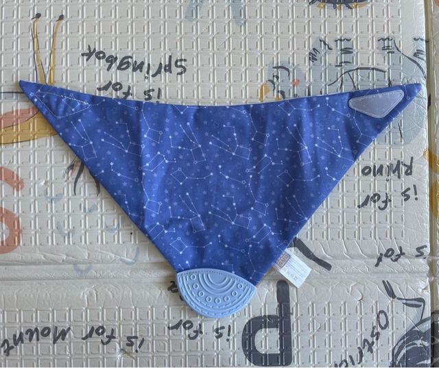 Detalles del productoEste babero de Saro para bebé tiene un diseño de constelaciones y un mordedor de silicona integrado.