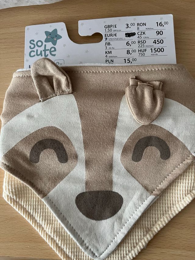 Dos piezas de baberos, talla unica, unisex, nuevos con etiqueta,color beige. Liso y dibujo animal. #bebes #baberos