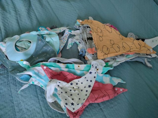 Conjunto de baberos para bebé, ideales para proteger la ropa de tu pequeño. Son suaves y están en buen estado.