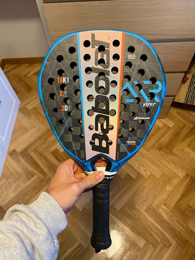 Pala de pádel Babolat Air Viper con un diseño moderno y llamativo. - Superficie con acabado 3D. - Marco de carbono 16K. - Tecnología Vibrasorb System.
