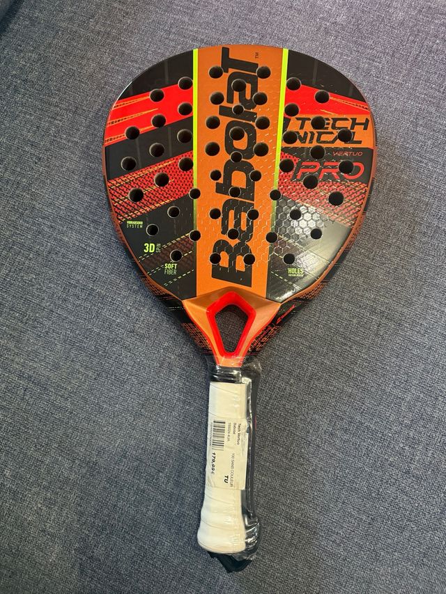 Pala de pádel Babolat Technical Vertuo. - Diseño con acabado en naranja y negro. - Tecnología 3D Spin System. - Material Soft Fiber.