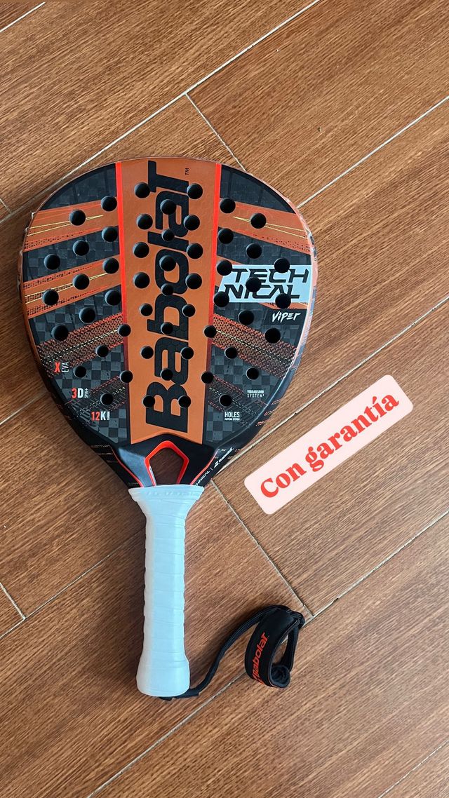 Pala con una semana de uso con el único desperfecto de un pequeño quite de pintura en la parte de arriba de la T de Babolat.