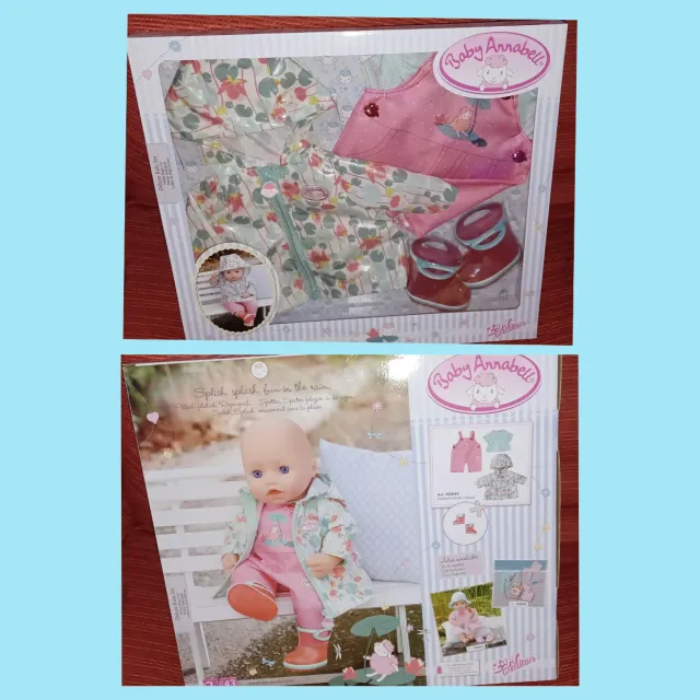 Conjunto de lluvia para muñeca Baby Annabell de 43 cm. - Incluye impermeable con estampado floral. - Peto rosa. - Botas a juego.
