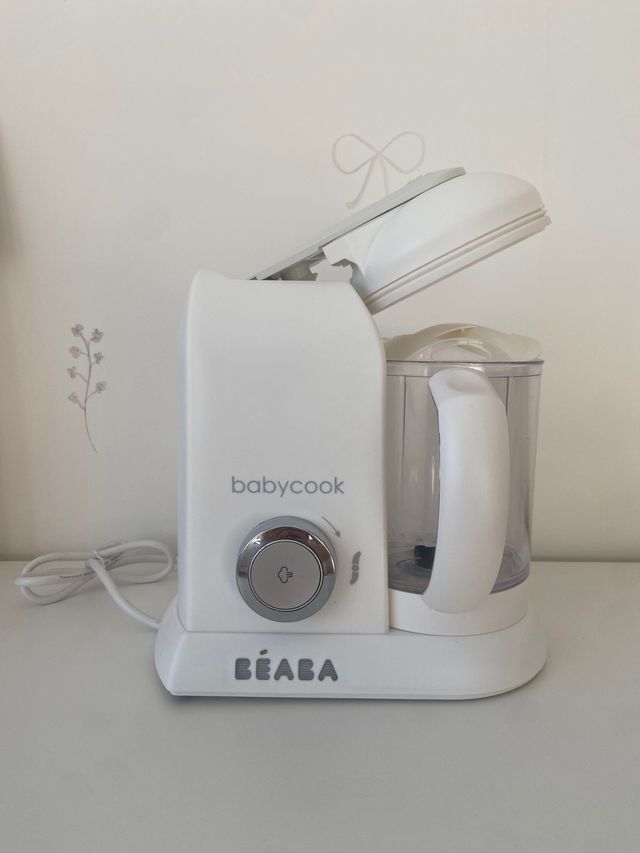 Detalles del productoRobot de cocina para bebés en color blanco. Cocina al vapor, tritura, descongela y calienta. En perfecto estado, utilizado apenas un par de veces. Una de las pequeñas asas del cesto está rota pero no es necesaria y se puede usar con total normalidad, no interfiere para nada.