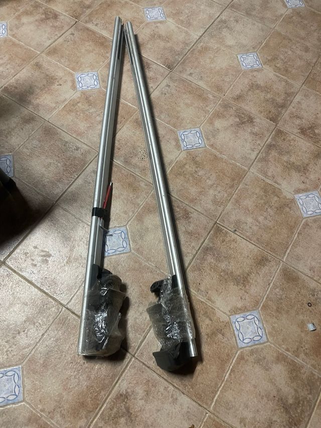 Detalles del productose compraron para bmw x5 pero vale para todos los que lleven barras longuitudinales Barras transversales para baca de techo de la marca Norauto. Son dos barras de aluminio, en buen estado.