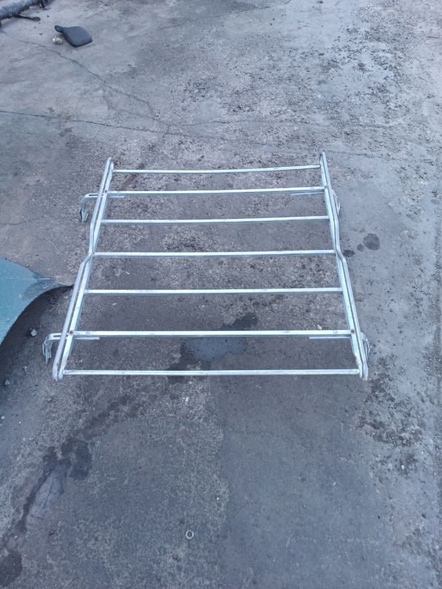 Detalles del productoBaca metálica universal para coches clásicos. Es un accesorio práctico para transportar equipaje. Galvanizada. Medidas de la parrilla 95x105 . Las patas de sujeción ensancha más y son regulables en anchura