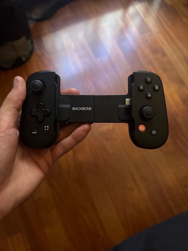 Controlador de juego Backbone con conexión USB-C. - Diseño ergonómico. - Botones frontales X, Y, A, B. - Sticks analógicos. - D-pad. - Botones de menú y opciones.
