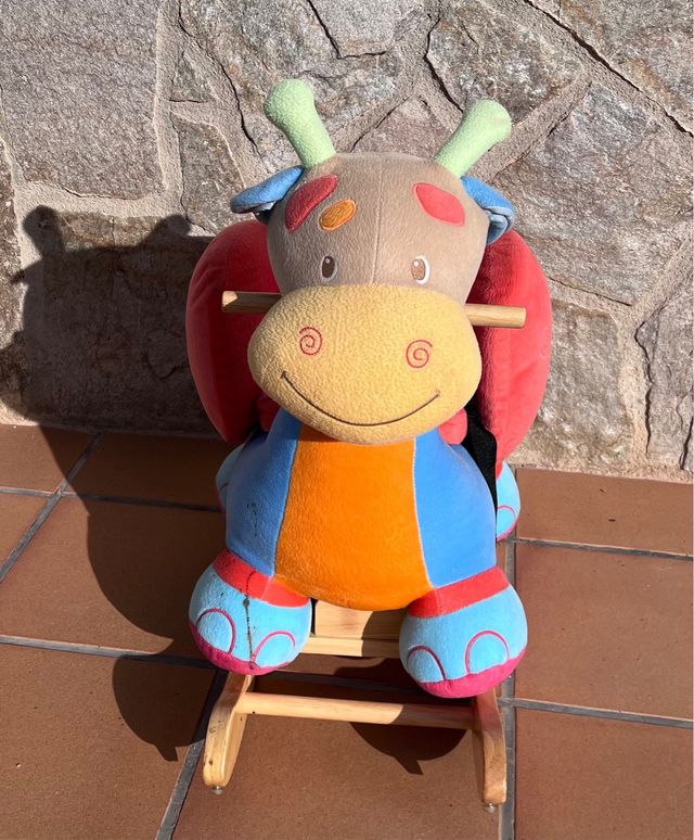 Divertido balancín con forma de jirafa de peluche. - Diseño colorido y atractivo. - Material de peluche suave. - Base de madera para balanceo.