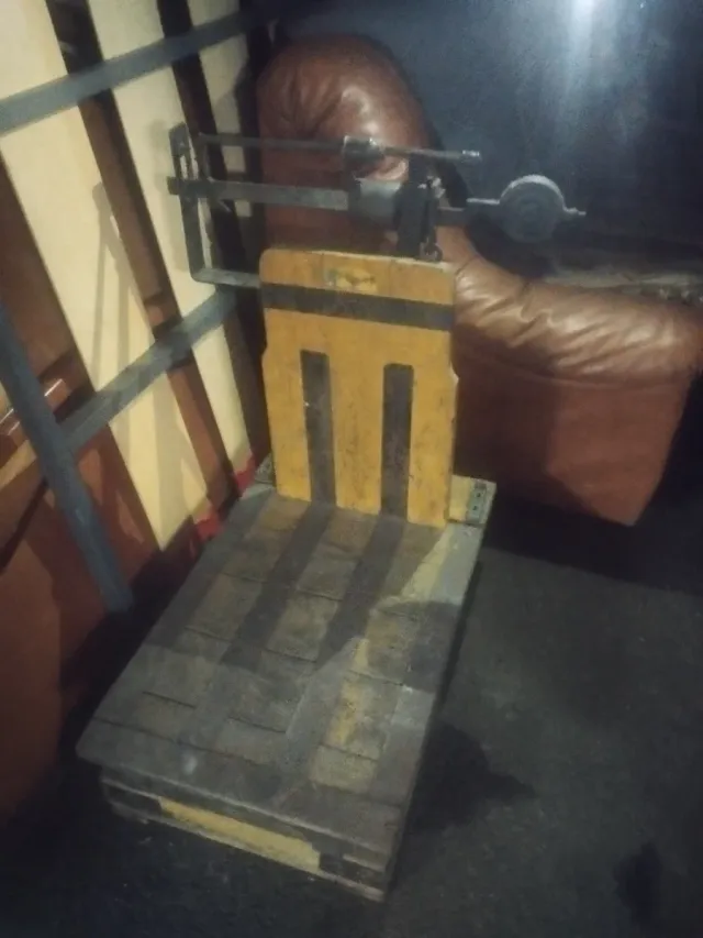 Balanza de pesaje antigua, ideal para coleccionistas o decoración. - Estructura metálica robusta. - Plataforma de madera. - Diseño industrial vintage.