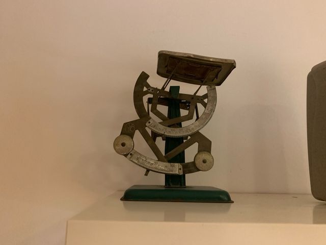 Detalles del productoPreciosa balanza antigua de metal. Ideal para decoración o coleccionistas. - Es una balanza de dos platillos. - Tiene un diseño clásico y elegante. - Se encuentra en buen estado de conservación, considerando su antigüedad. - Perfecta para añadir un toque vintage a tu hogar u oficina.