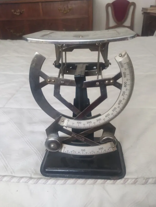 Balanza de platillos con escalas graduadas para mediciones precisas. - Diseño robusto de metal. - Escala principal hasta 1000. - Escala secundaria hasta 200.