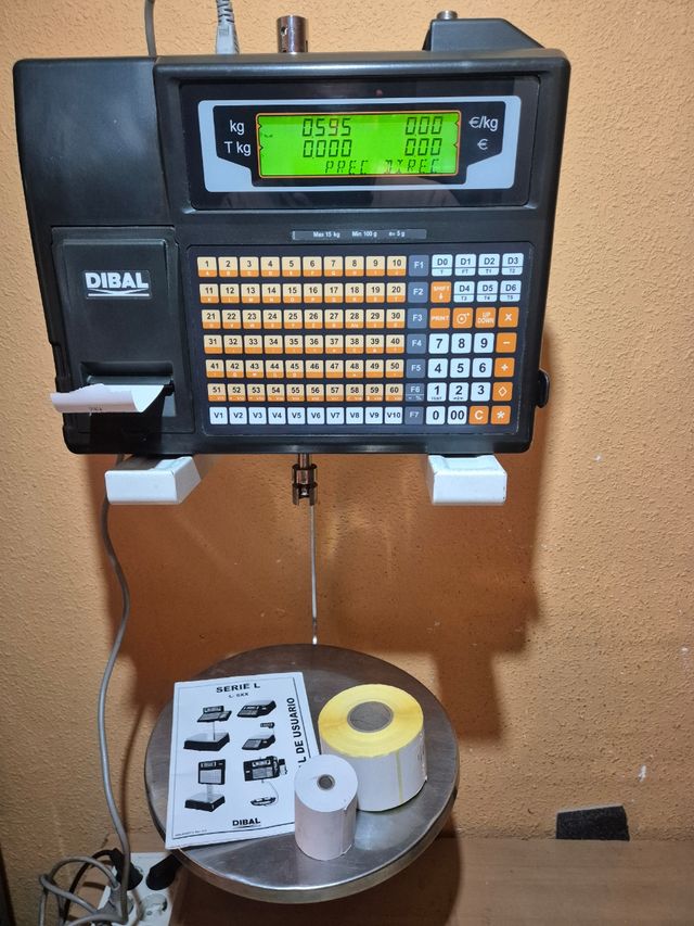 Bascula colgante dibal serie L con 2 impresoras ticket y pegatinas
