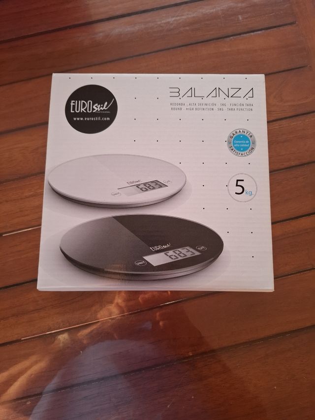 Balanza digital redonda de alta definición de la marca Eurostil. - Capacidad máxima de 5 kg. - Función Tara. - Diseño moderno y elegante.