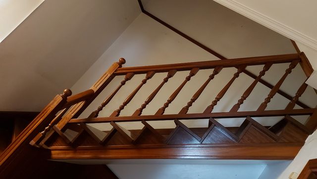 Detalles del productoConjunto formado por dos tramos de balaustrada rústica de madera maciza, para ocho y tres escalones, respectivamente. Desmontaje y transporte por cuenta del comprador. Haga su oferta. Medidas del producto